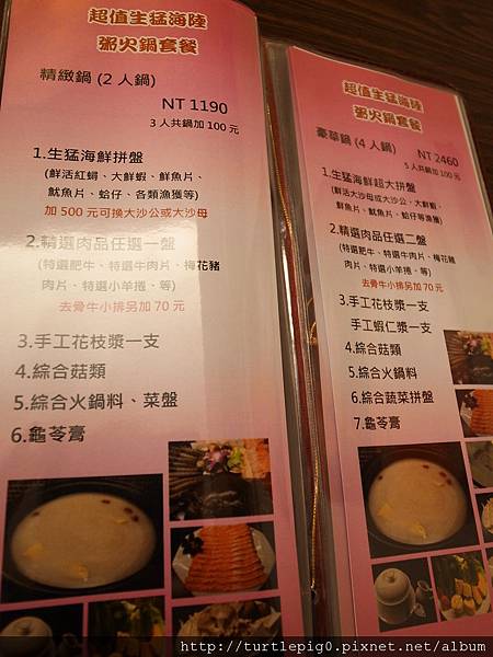 我們看了菜單後,發現八腳老大的菜單竟跟十二籃一模一樣…連前面的小菜用毛豆,後面的甜點用龜靈膏都是一樣的…感覺這二家店一定有什麼關係,但生意的好壞實在差很多,但既然來了, 我們仍是點了夏天優惠的2人份粥火鍋套餐(特價999元),但加了500元將紅蟳換成大沙母。