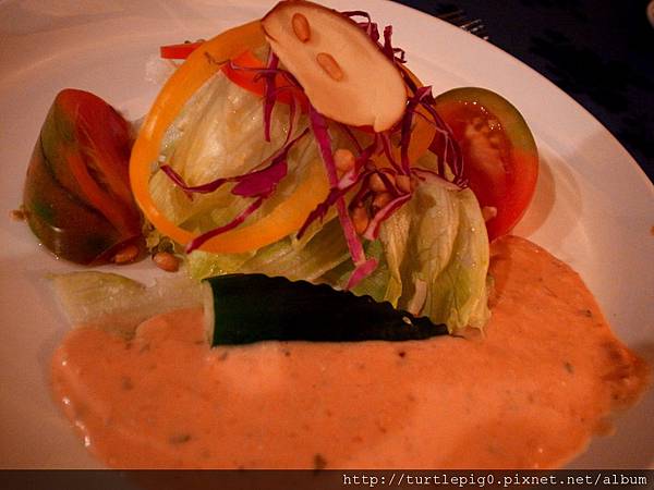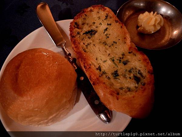 第一道:熱烤麵包,很好吃,最近一次去歐洲,發現我最融入歐洲料理的部分,就是餐前的麵包,我好愛吃(但往往吃完,後面就不行了)。