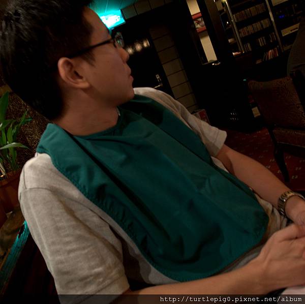 牛排可以選瓷盤或鐵盤,鐵盤肉會較老些,但因為聽說很香,我們就選了鐵盤,選鐵盤得要圍兜兜…哈哈